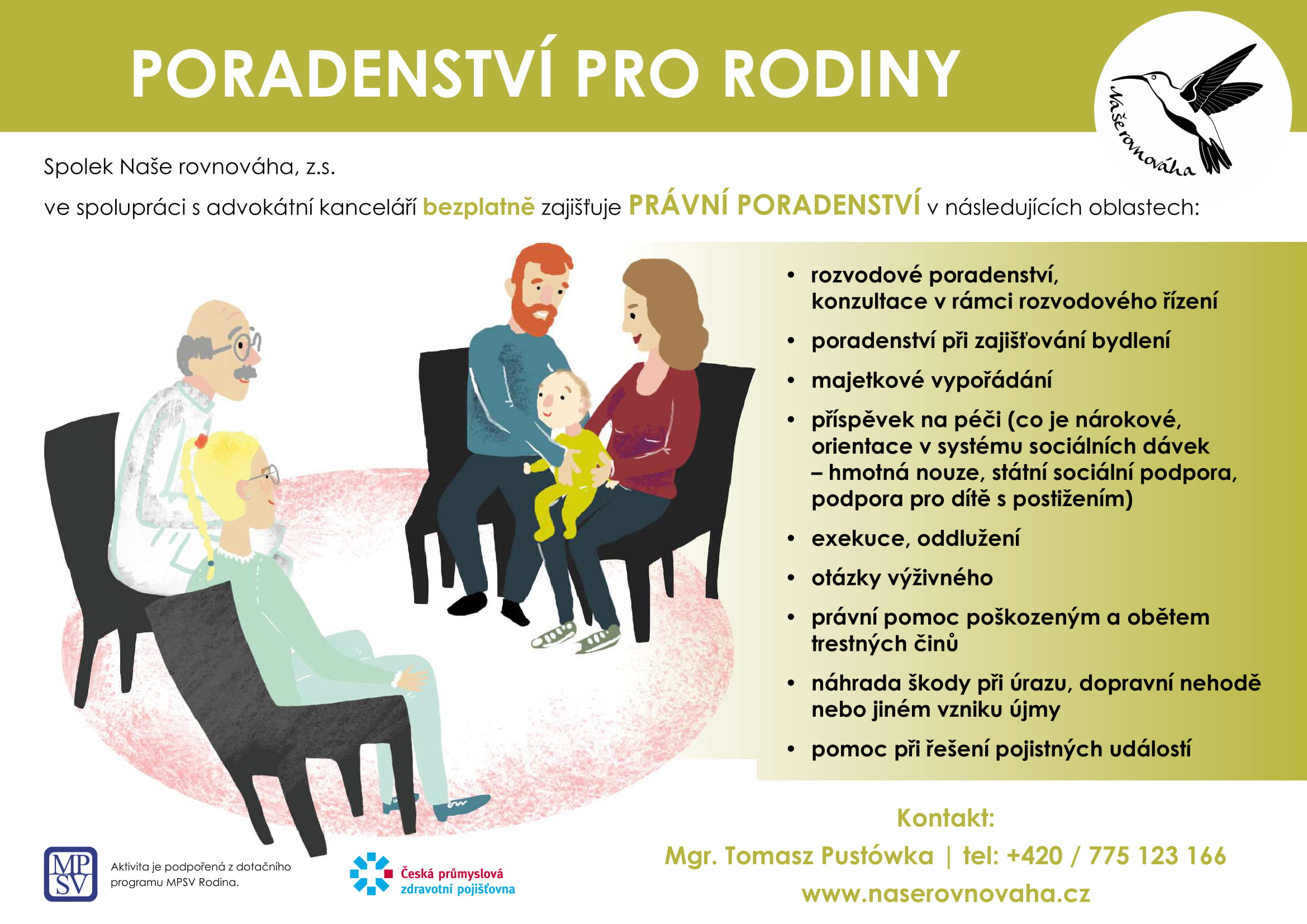 Spolek Naše rovnováha, z.s. z Českého Těšína ve spolupráci s advokátní kanceláří zajišťuje v následujících bezplatně PRÁVNÍ PORADENSTVÍ oblastech: