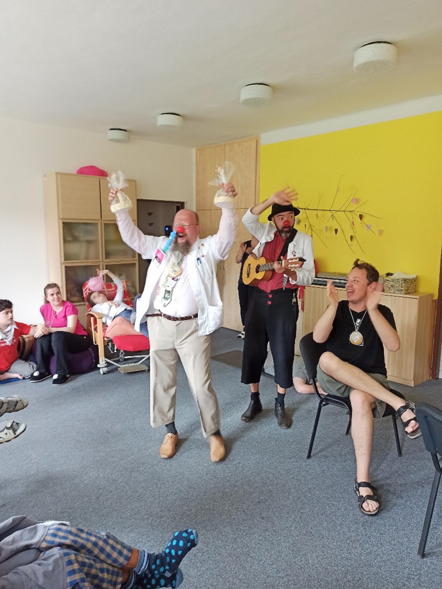 Dne 16.06. 2022 nás navštívili dva zdravotní klauni – MUDr. Alois Vemeno a MUDr. Bedřich Voháňka. Nejenom, že nás přišli rozveselit, ale také nám donesli perníkové medaile a pozvánku na akci „Běh pro hospic“, který pořádá v rámci celostátní kampaně MEDICA Třinec.