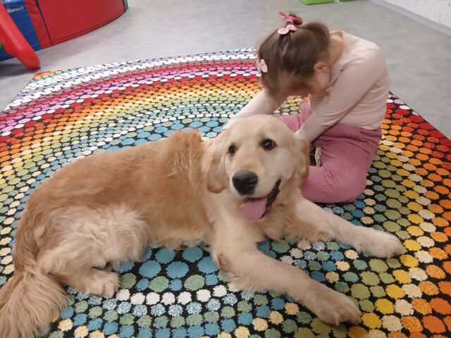Ve čtvrtek 13.11.2025 jsme v Denním stacionáři PAPRSEK opět přivítali pejsky, tentokrát až čtyři zlaté retrívry. Prožili jsme hodinu plnou aktivit, vjemů, pohody a legrace.
