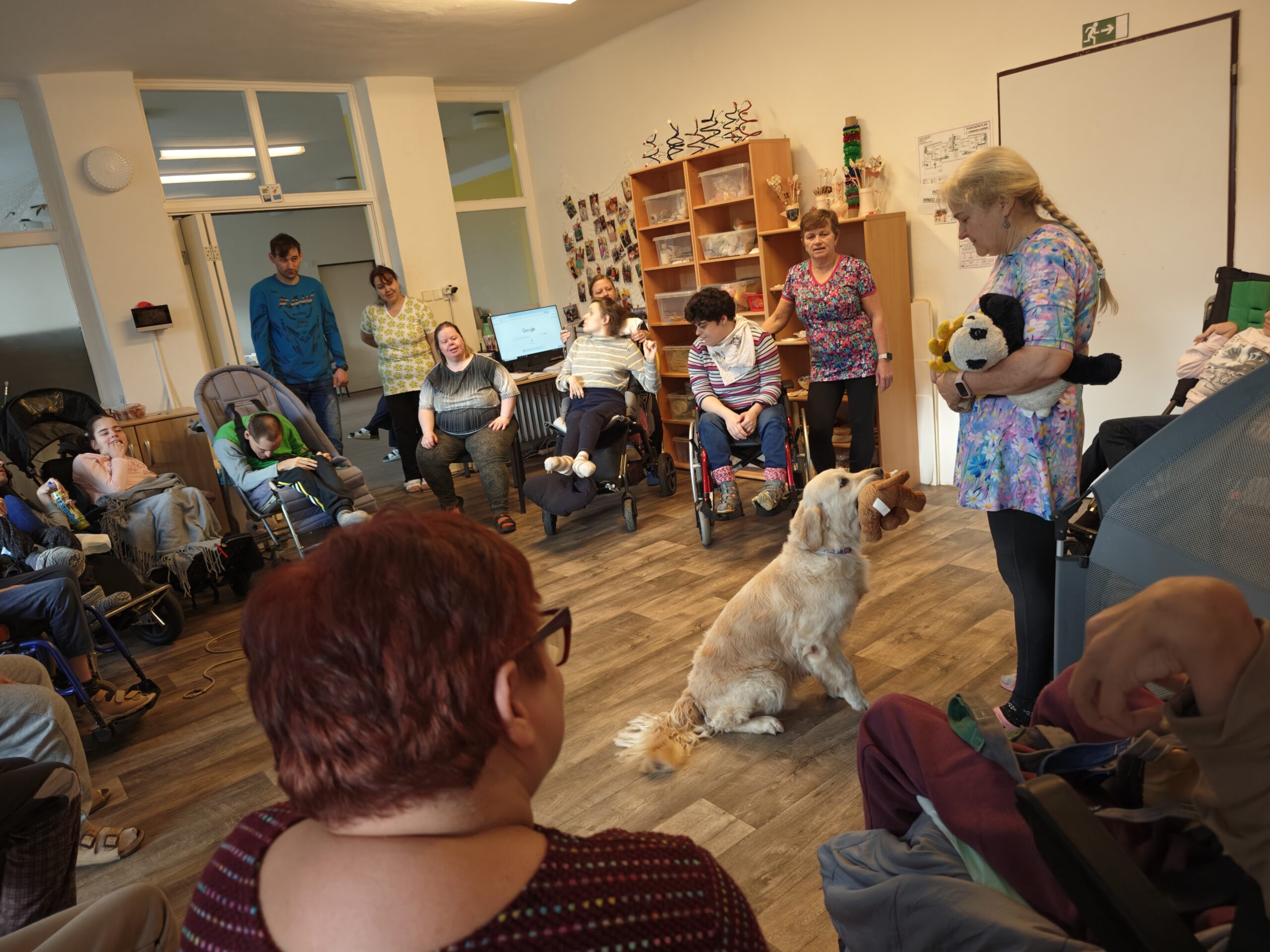Pravidelně nás navštěvuje paní Ivana Kučerová se svými zlatými retrívry. Do stacionáře k nám docházejí canisterapeutičtí psi Jenifer, Direkt, Ginger a Ivanka. Měli jsme také možnost přivítat štěně Karamelku, která se na svou budoucí roli canisterapeutického psa teprve připravuje.