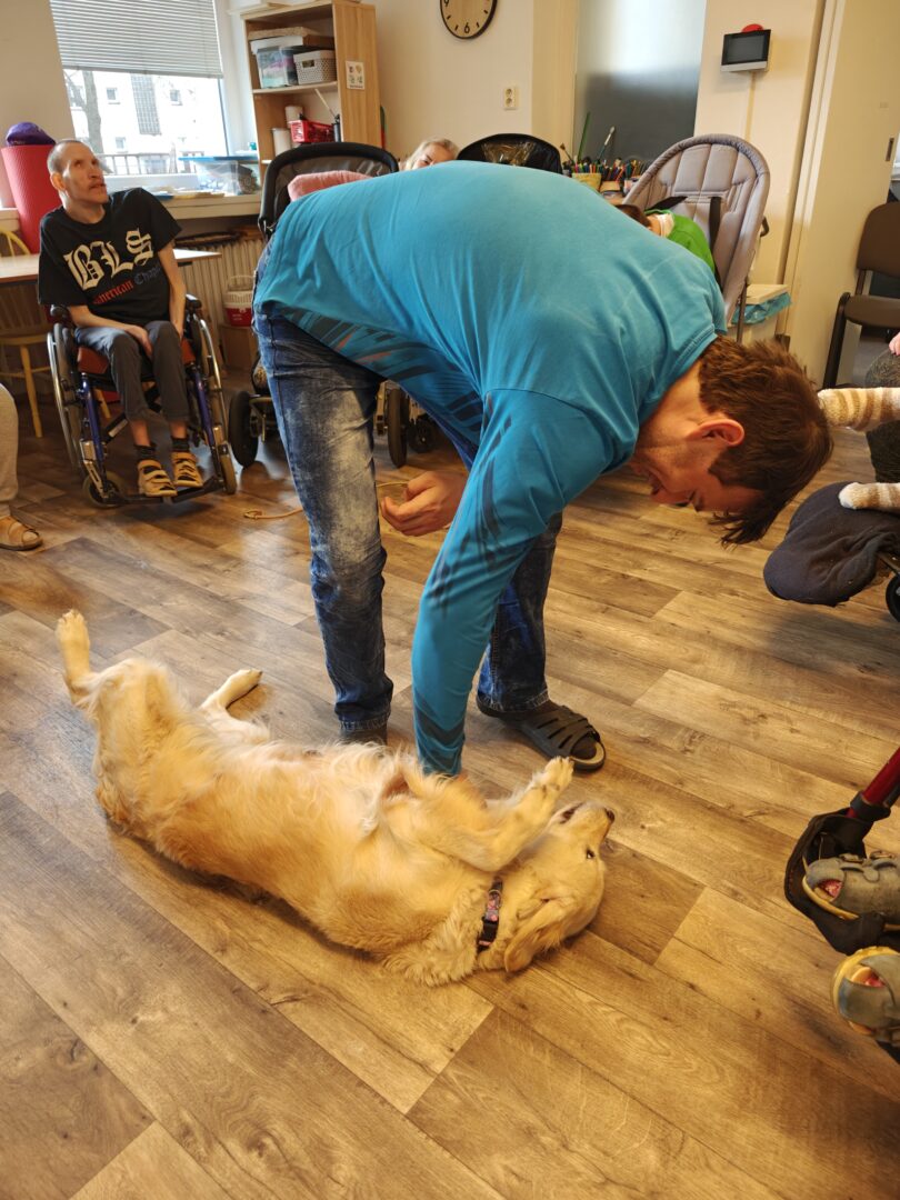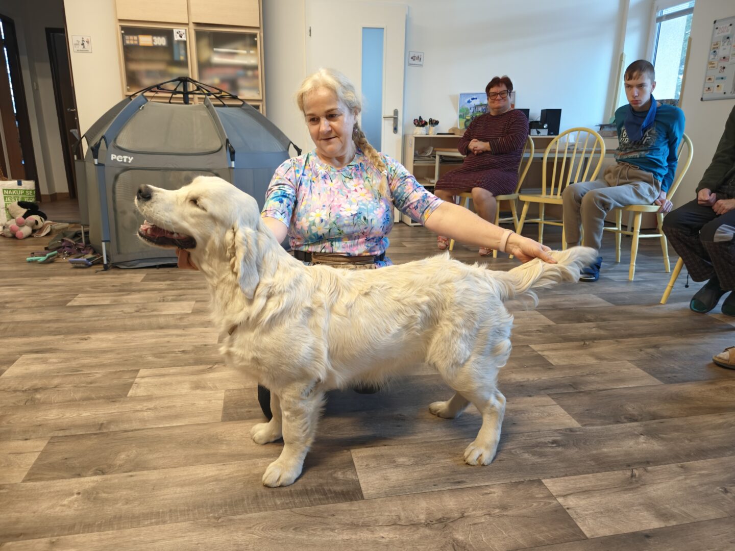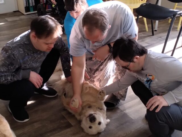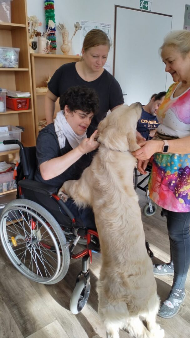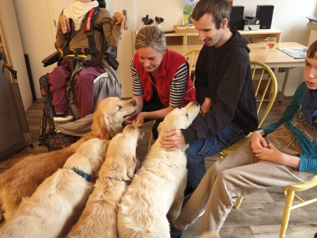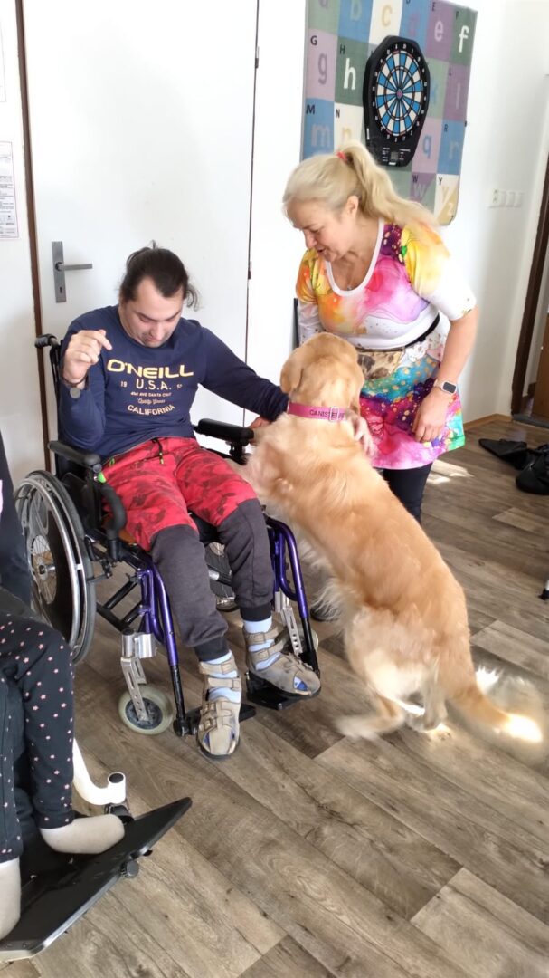 Během setkání pejsci předvádějí řadu dovedností – vyhledávají plyšové hračky i piškoty, aportují a spolu s klienty trénují základní práci se psem. Klienti se učí, jak psa správně chválit, jak ho vodit na vodítku a jak s ním bezpečně navazovat kontakt. Samozřejmostí je i možnost mazlení a přímého kontaktu – pejsci se ochotně položí k ležícím klientům a přirozeně navazují blízký kontakt.