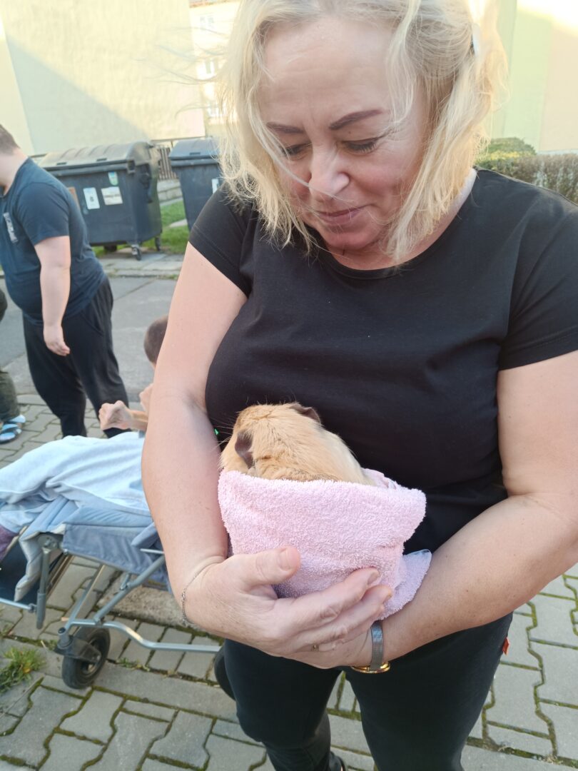 Letos jsme poprvé využili sirénu, aby byl signál lépe slyšitelný. Všichni klienti i pracovníci reagovali ukázkově – klienti neztráceli čas převlékáním, pracovníci rychle přemístili imobilní klienty na vozíky a využili nejbližší evakuační východy. Nezapomněli jsme ani na našeho zvířecího parťáka Darka, který se evakuoval společně s námi.