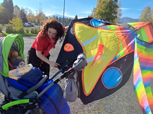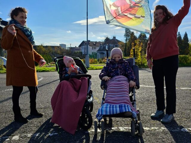 Ve čtvrtek byl větrný den, jako stvořen, pro drakiádu! Ta se uskutečnila na blízkém parkovišti, kousek od Denního stacionáře PAPRSEK. Děti tak nemusely nikam daleko a přesto si užily nádherný, podzimní den, plný zábavy. Zúčastnily se nejen děti z PAPRSKU, ale i žáci základní školy, společně se svými učitelkami a asistentkami.