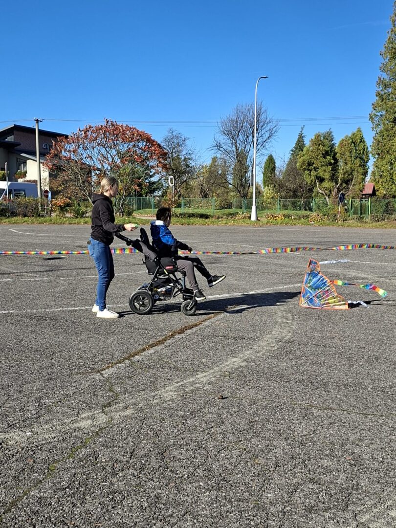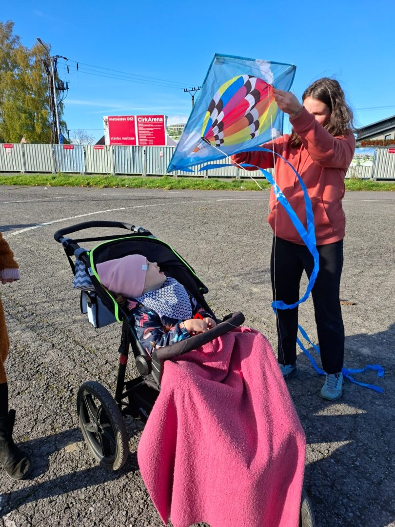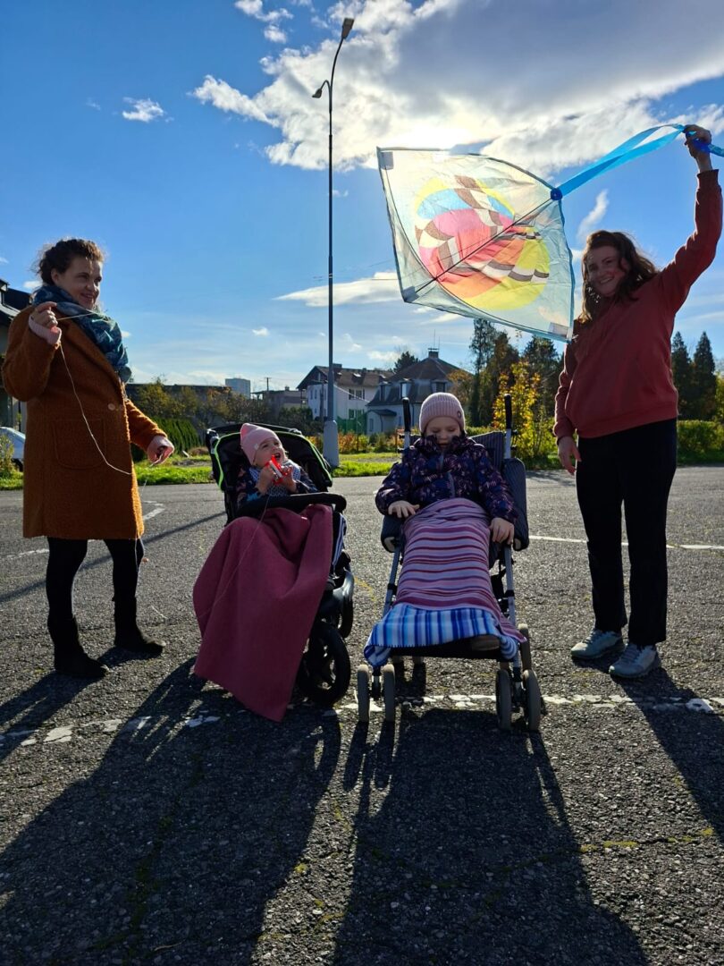Ve čtvrtek byl větrný den, jako stvořen, pro drakiádu! Ta se uskutečnila na blízkém parkovišti, kousek od Denního stacionáře PAPRSEK. Děti tak nemusely nikam daleko a přesto si užily nádherný, podzimní den, plný zábavy. Zúčastnily se nejen děti z PAPRSKU, ale i žáci základní školy, společně se svými učitelkami a asistentkami.