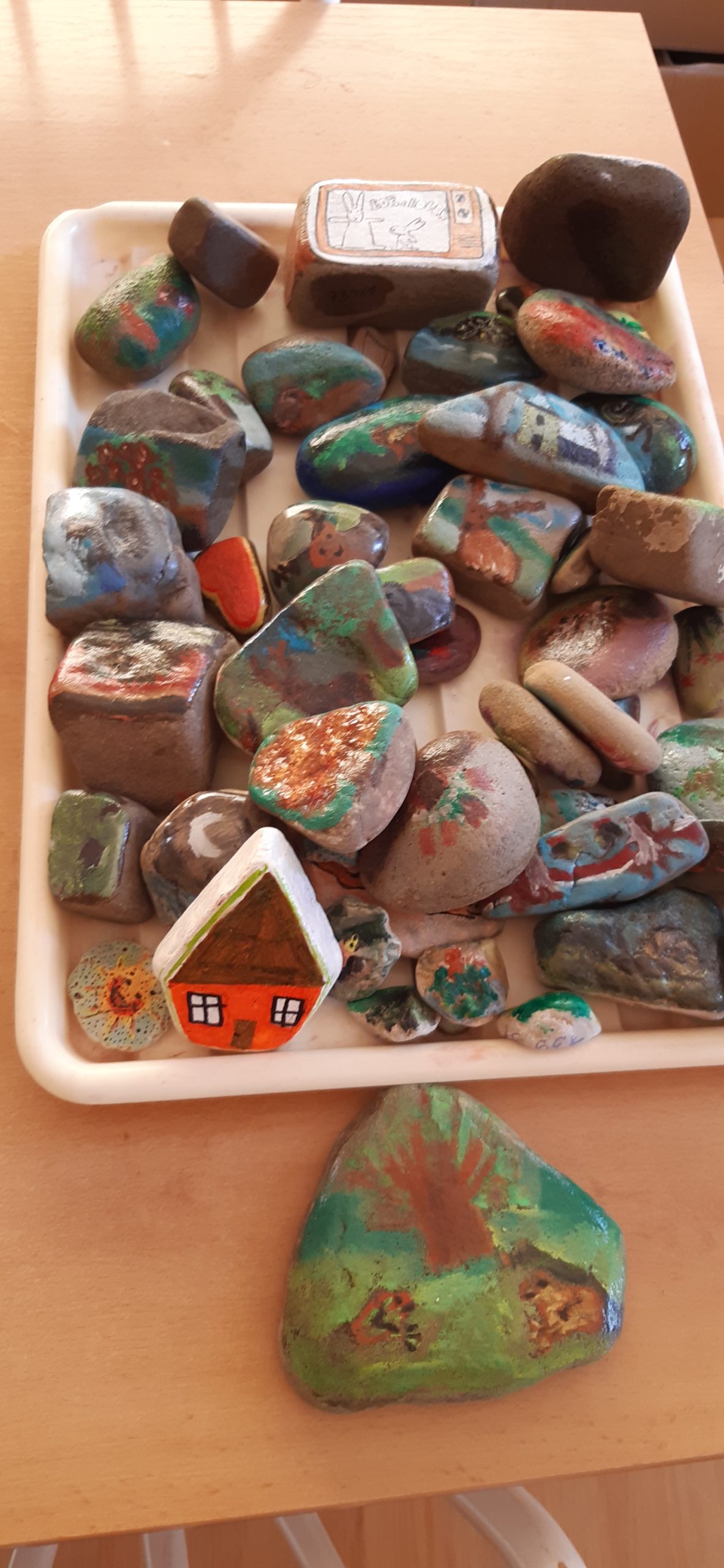Slyšeli jste o malování na kamínky? A už se Vám podařilo nějaký najít? Pokud ano, možná je od klientů Denního stacionáře RADOST. O své práci píše náš klient Martin: