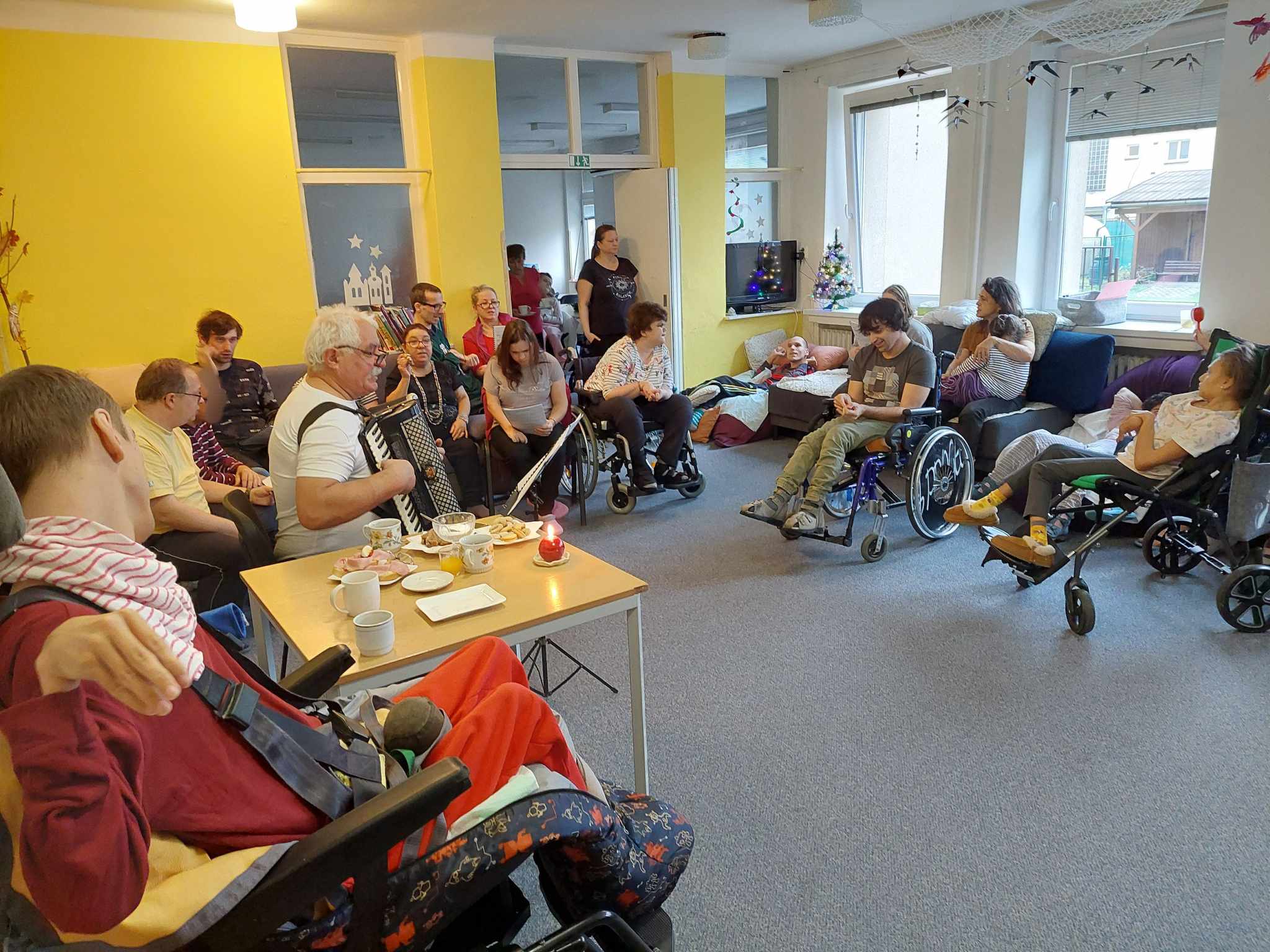 Dne 05.12.2024 přijal pozvání do Denního stacionáře RADOST pan Pomykacz. Přišel nám již tradičně zahrát a zazpívat za doprovodu harmoniky vánoční koledy a písničky. Pozvání přijal i náš pan ředitel a Denní stacionář PAPRSEK. Za společného zpěvu známých koled jsme se vánočně naladili a popřáli si závěrem do nového roku jen to nejlepší.