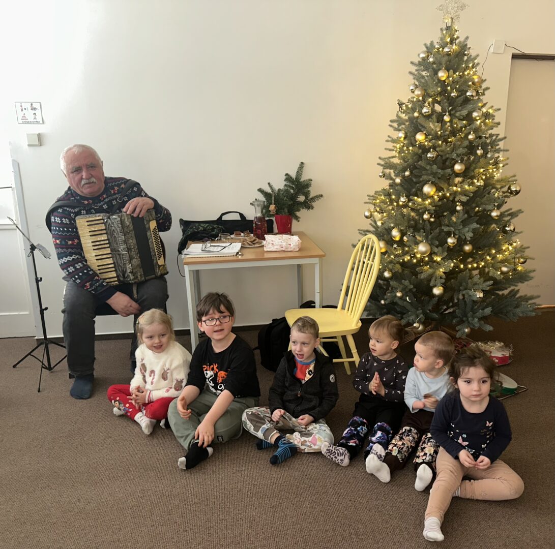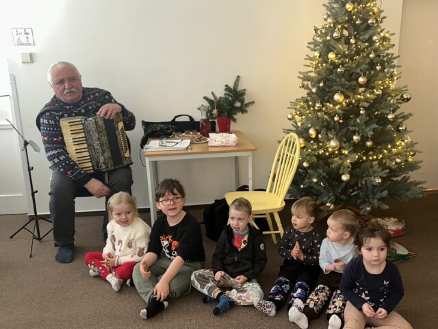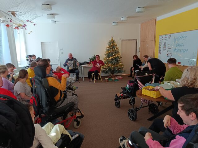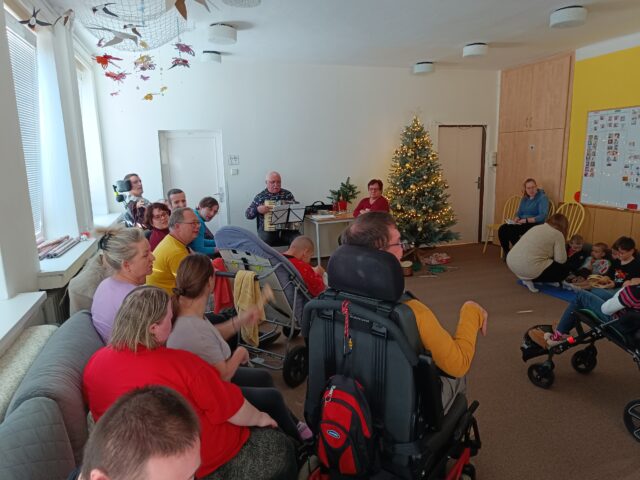 Ve středu 10. prosince k nám již tradičně zavítal pan Pomykacz, který s radostí přijal naše pozvání a přišel nám zpříjemnit adventní čas. Pozvání přijaly také děti z Dětské skupiny Pampeliška. Společně jsme tak mohli prožít dopoledne plné vánoční pohody, radosti a hudby.