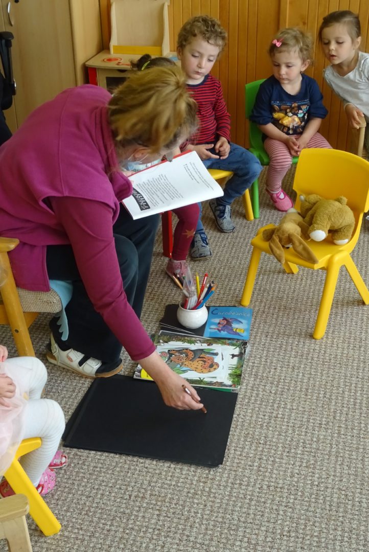 Dětská skupina PAMPELIŠKA znovu zahájila provoz jako jedna z prvních služeb Centra sociální pomoci, příspěvkové organizace, a to 11.5.2020. Květen byl v dětské skupině zaměřen na etiketu, pravidla slušného chování „Kouzelná slovíčka otevírají srdíčka“, povídali jsme si o rodině a kamarádech. Maminkám jsme k jejich svátku vyrobili dáreček, cvičili jsme s padákem, se kterým jsme si nejen vyhráli, ale také procvičovali barvičky. Květnové křeslo pro hosta přijala speciální pedagožka Mgr. Regina Turoňová, jež u nás v organizaci učí předškolní přípravu. Připravila si pro děti krátké a poučné čtení o bílé pastelce, se kterou pak děti také malovaly.