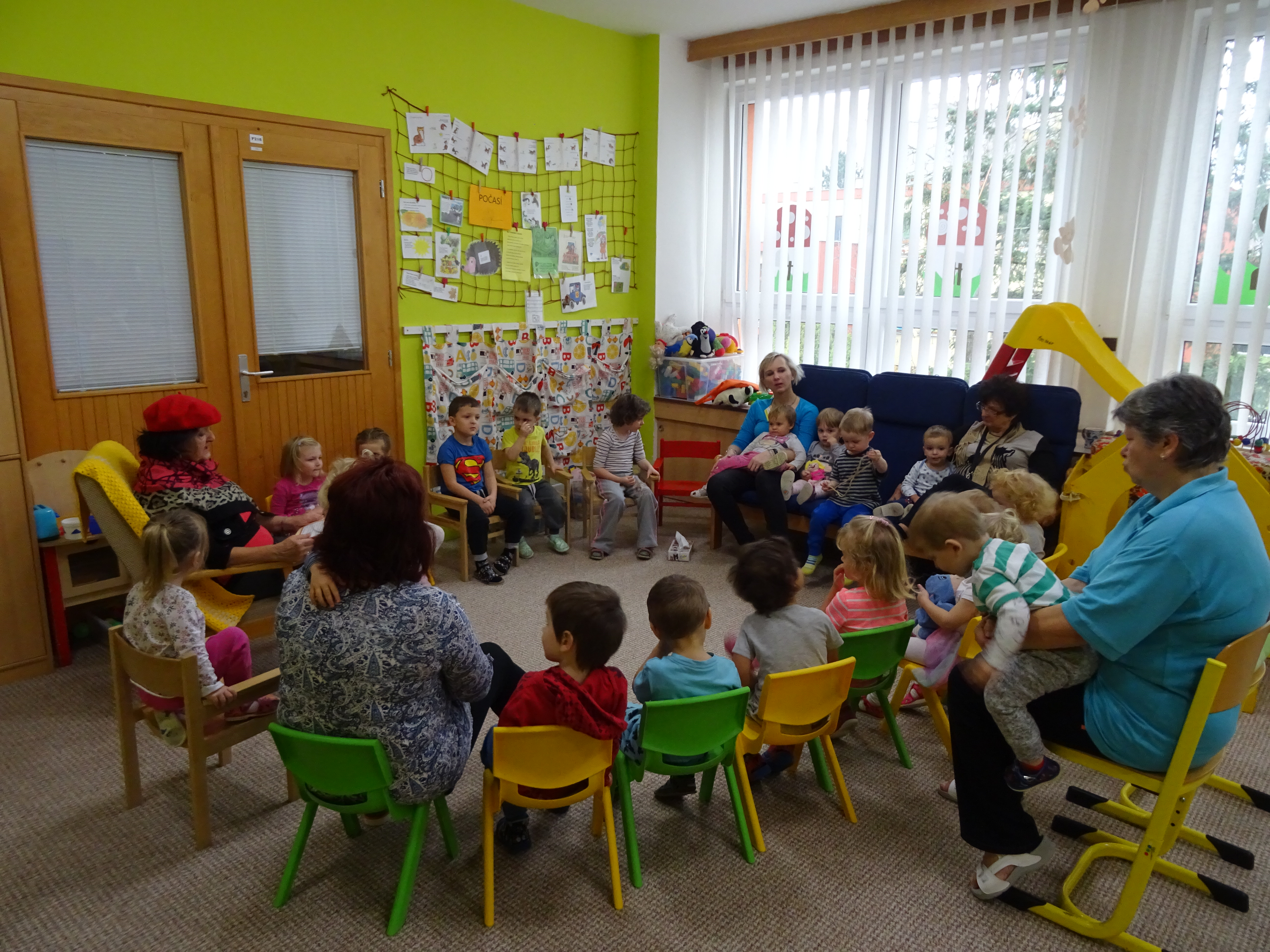 Dětská skupina PAMPELIŠKA si tento krásný podzimní měsíc užívala plnými doušky. Kromě dalších básní a písní s tematikou počasí děti opět procvičovaly jemnou motoriku, pouštěly s pracovnicemi draka a v rámci „Křesla pro hosta“ přivítaly kouzelnou paní Ewu Sczerbovou/Jewku Trzynczanku, známou autorku fejetonů v nářečí, se kterou si povídali o povoláních a která děti zaujala pohádkou „O perníkové chaloupce“.