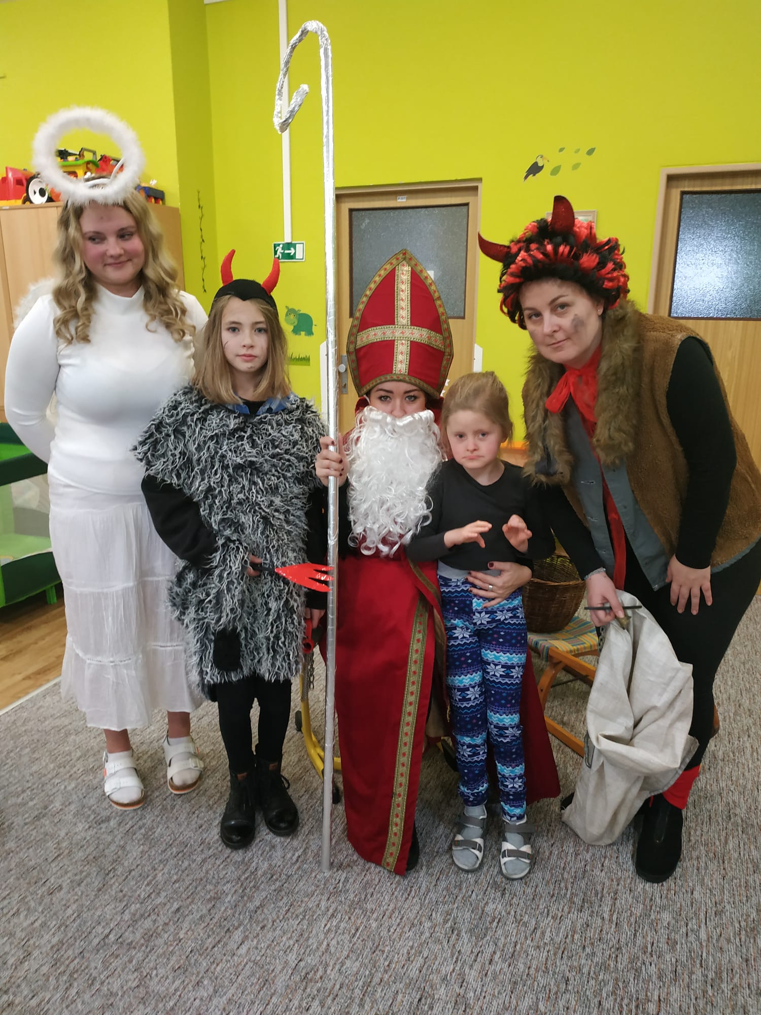 6. prosince k nám zavítal MIKULÁŠ s čerty, andělem a s nadílkou, kterou přivezli na saních.  Společně jsme si zazpívali a zatančili a užili si dopoledne plné dětských úsměvů a zářících očí. Už teď se těšíme na příští rok, kdy se opět setkáme. 🙂