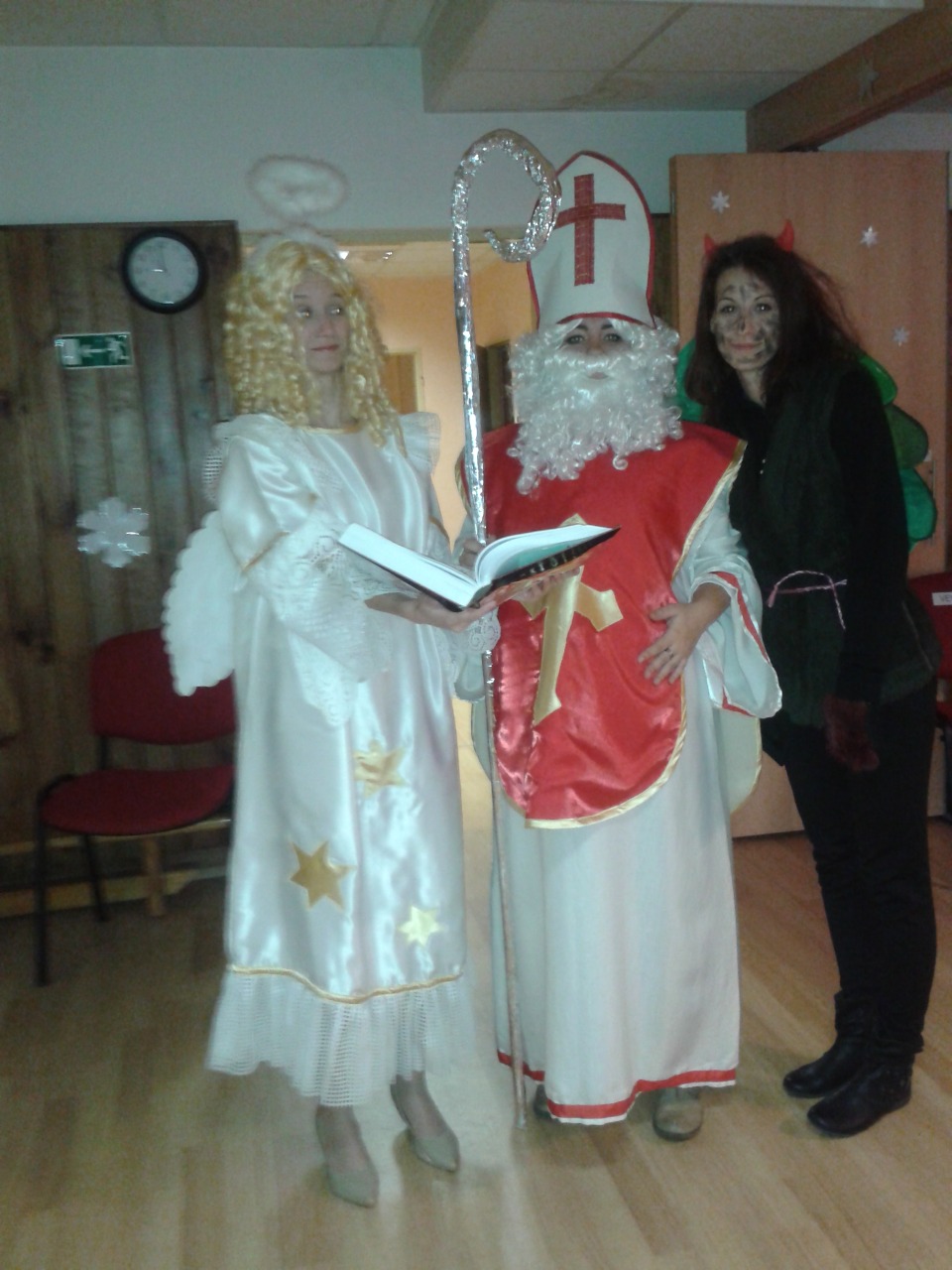 4.12. 2015 nás v Denním stacionáři Paprsek poctila vzácná návštěva – Mikuláš, Anděl a Čert. Děti jim zazpívaly a za odměnu dostaly sladkosti. Poté zavítali i do Denního stacionáře Radost. No a nezapomněli ani na naše zaměstnance.