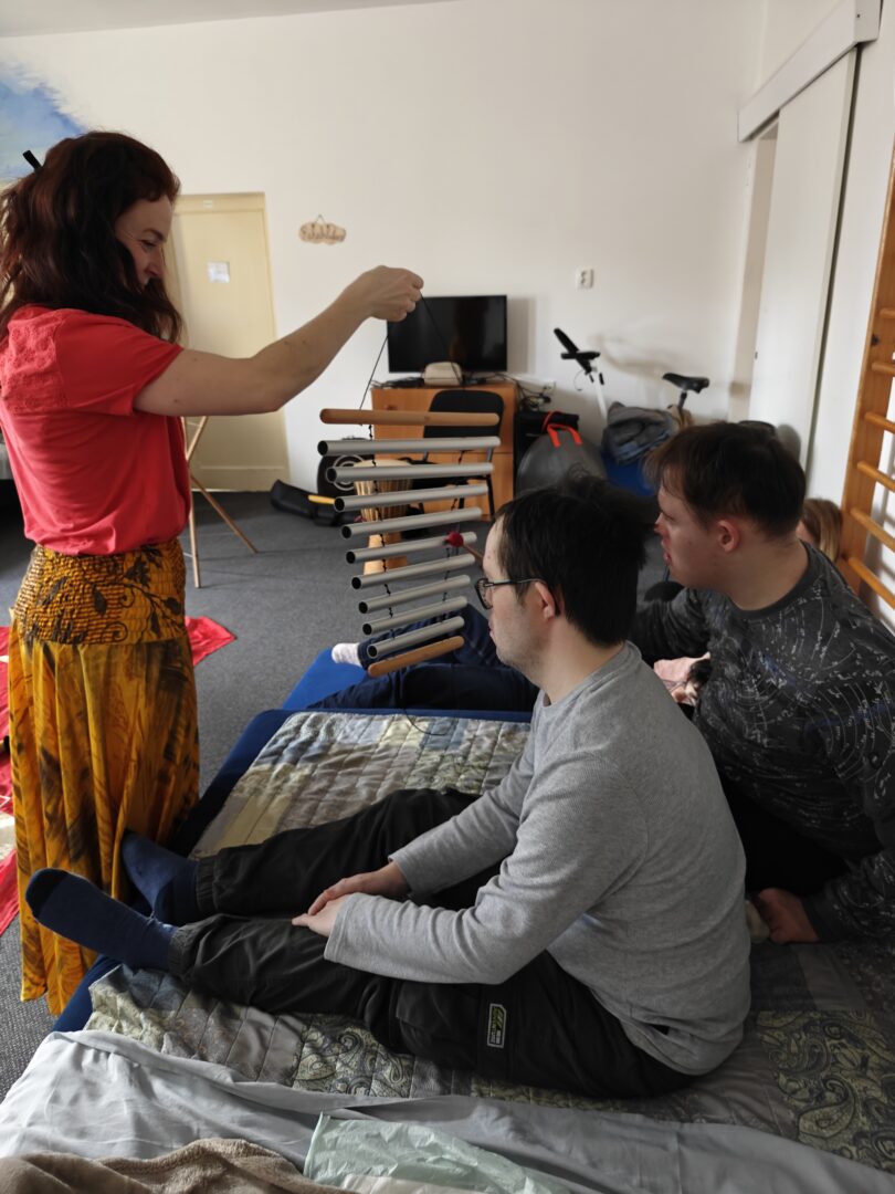 Během muzikoterapie mají klienti možnost relaxovat, odpočinout si a načerpat pozitivní energii. Atmosféra je vždy velmi příjemná a podporující. Přestože by se mohlo zdát, že jednotlivá setkání jsou podobná, opak je pravdou. Paní Anička pokaždé připravuje program jinak, zapojuje různé hudební nástroje a přináší nové podněty.