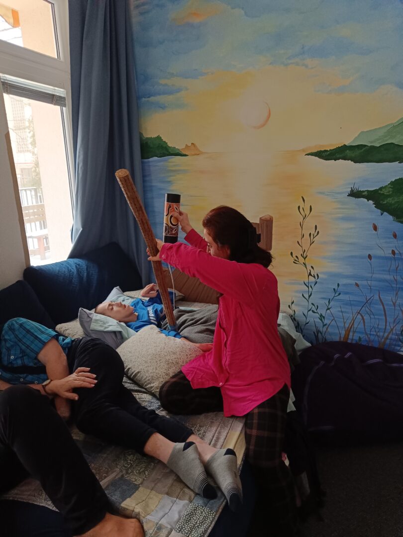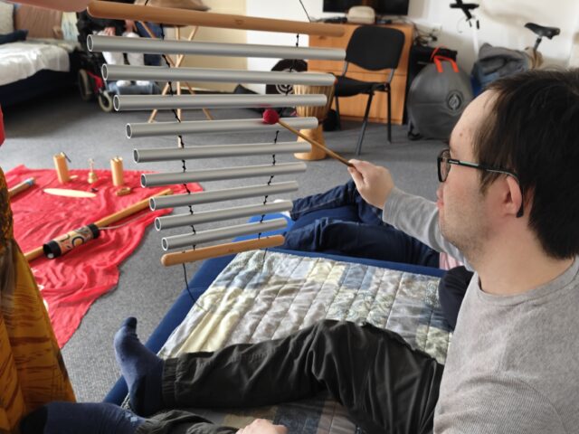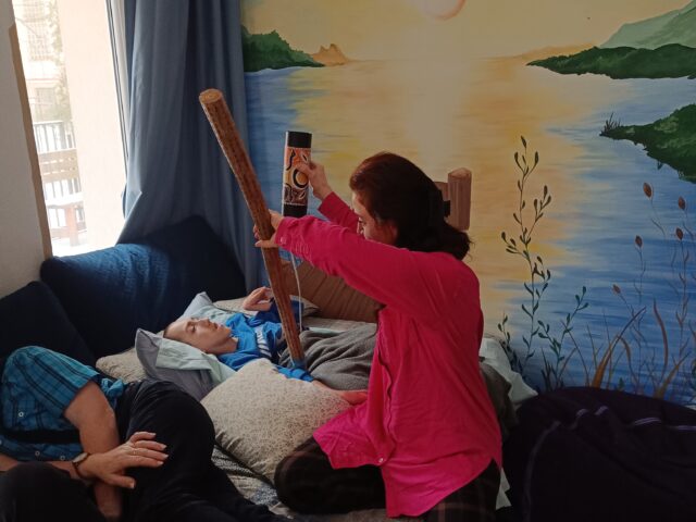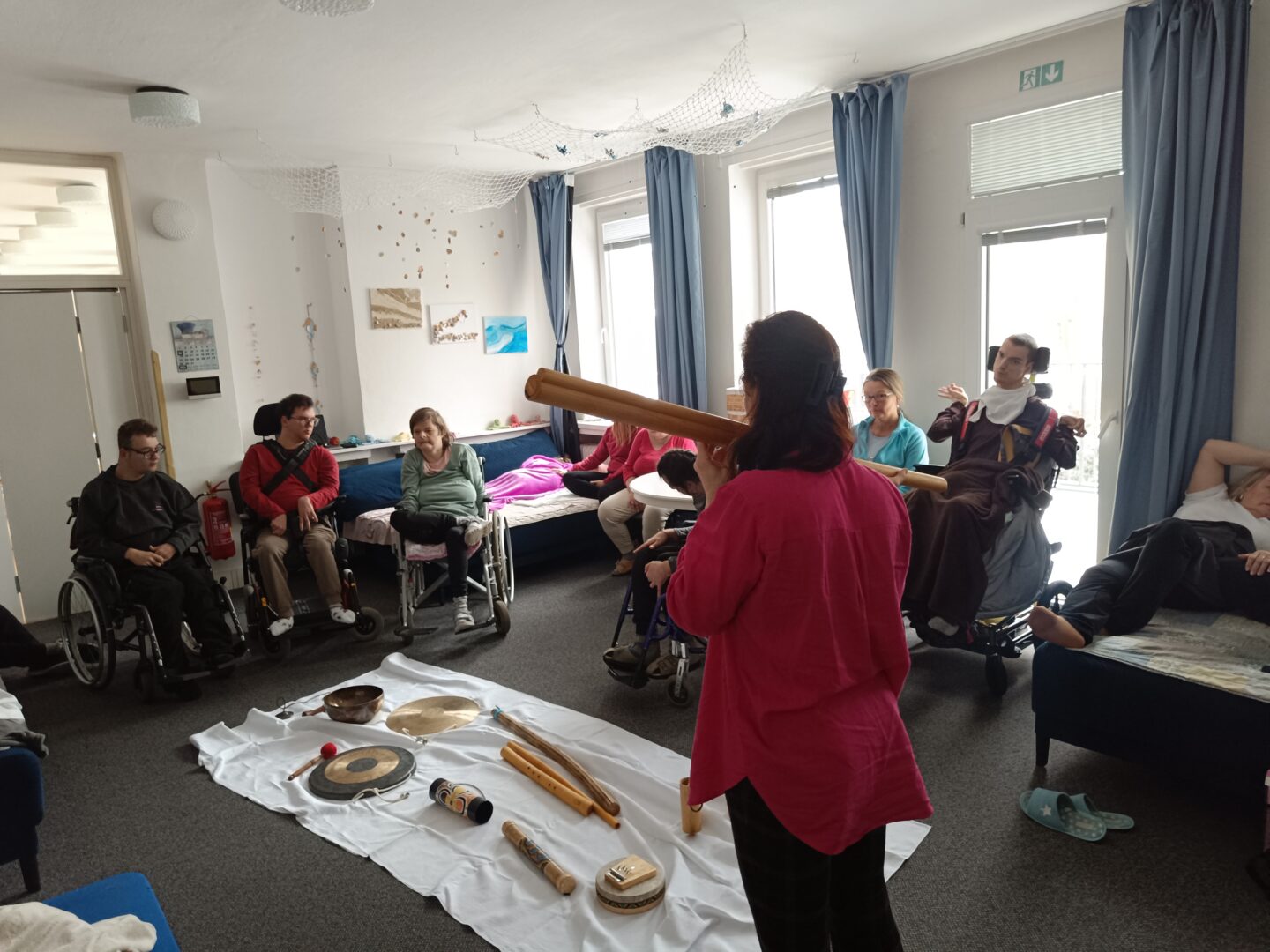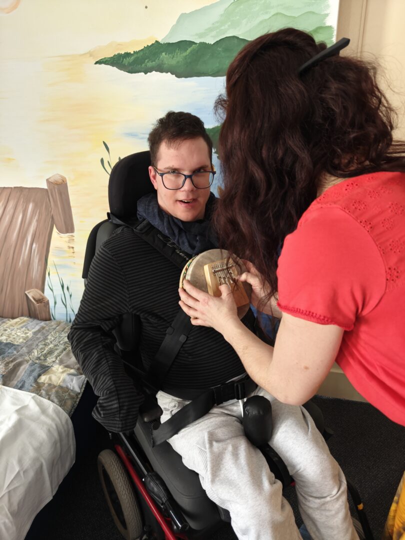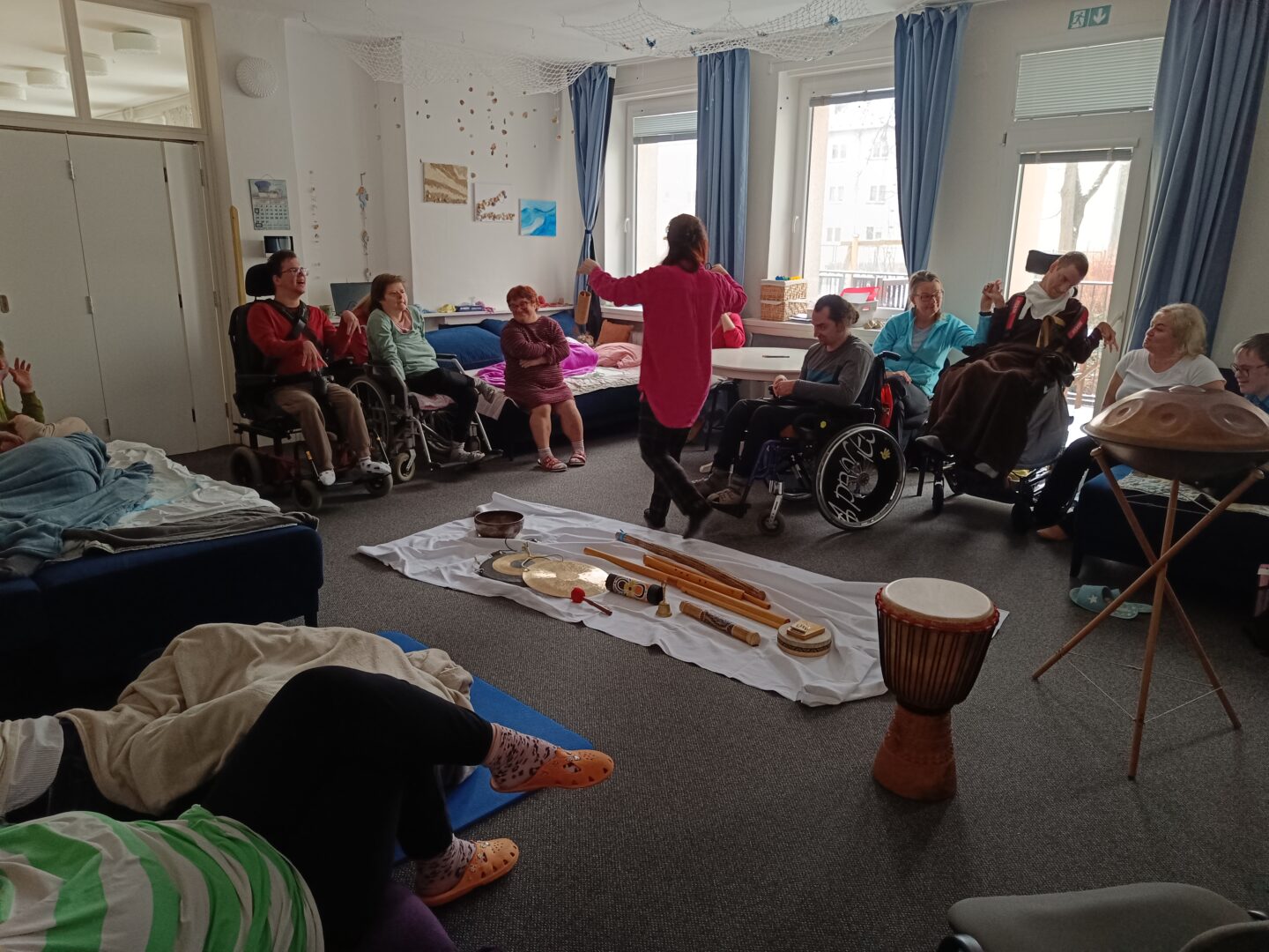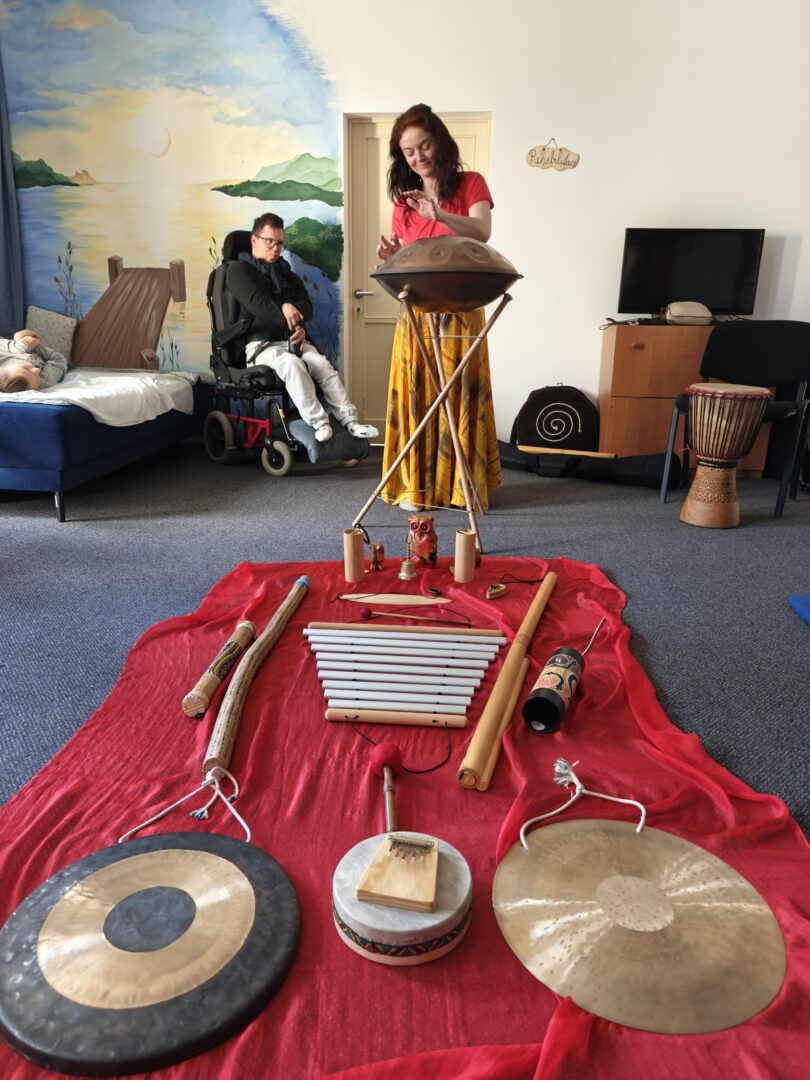 Muzikoterapie v našem stacionáři probíhá pravidelně jednou měsíčně v předem domluvených termínech, vždy v odpoledních hodinách od 13 do 14 hodin. Setkáními nás provází paní Anička Stellerová.