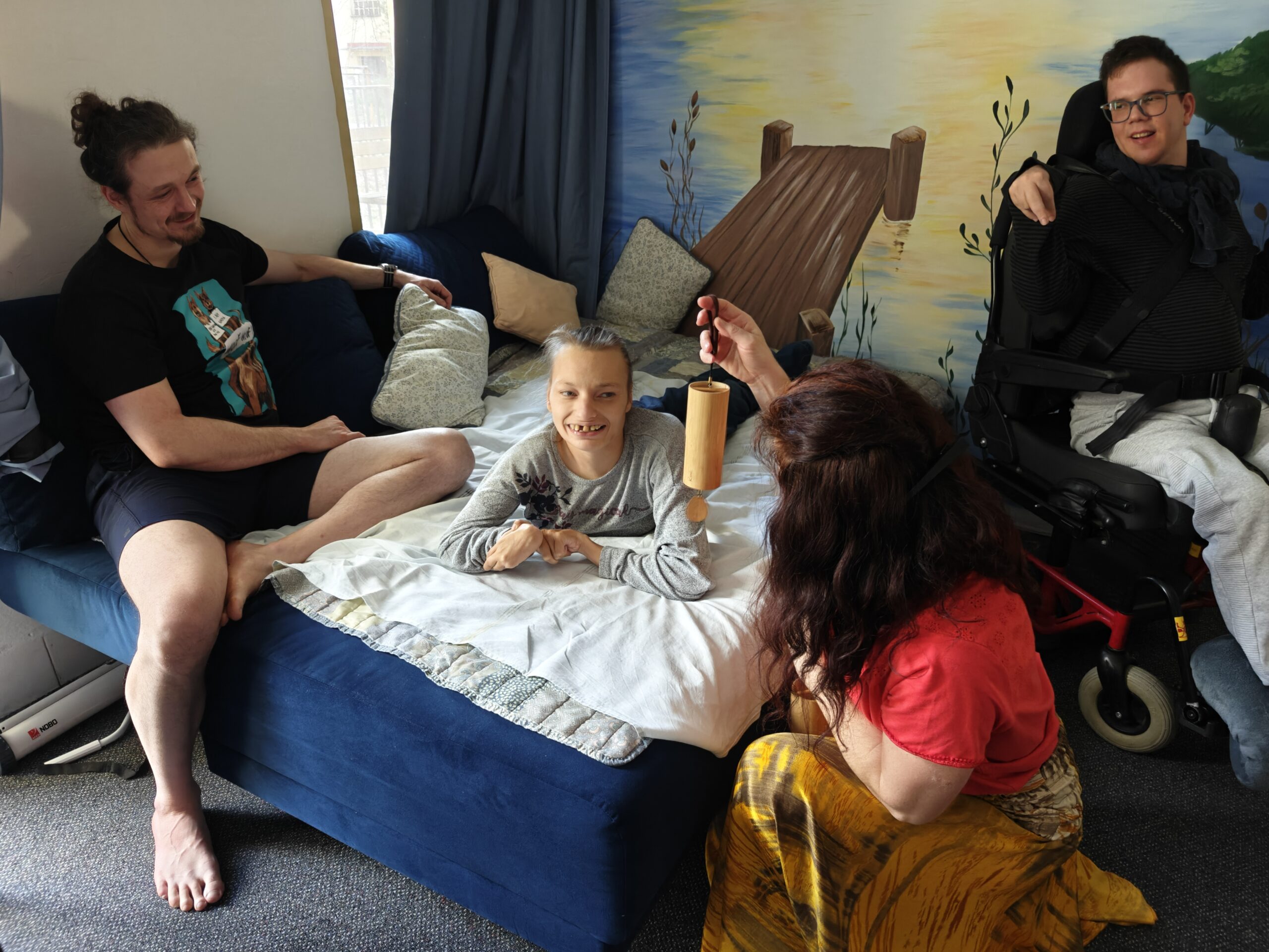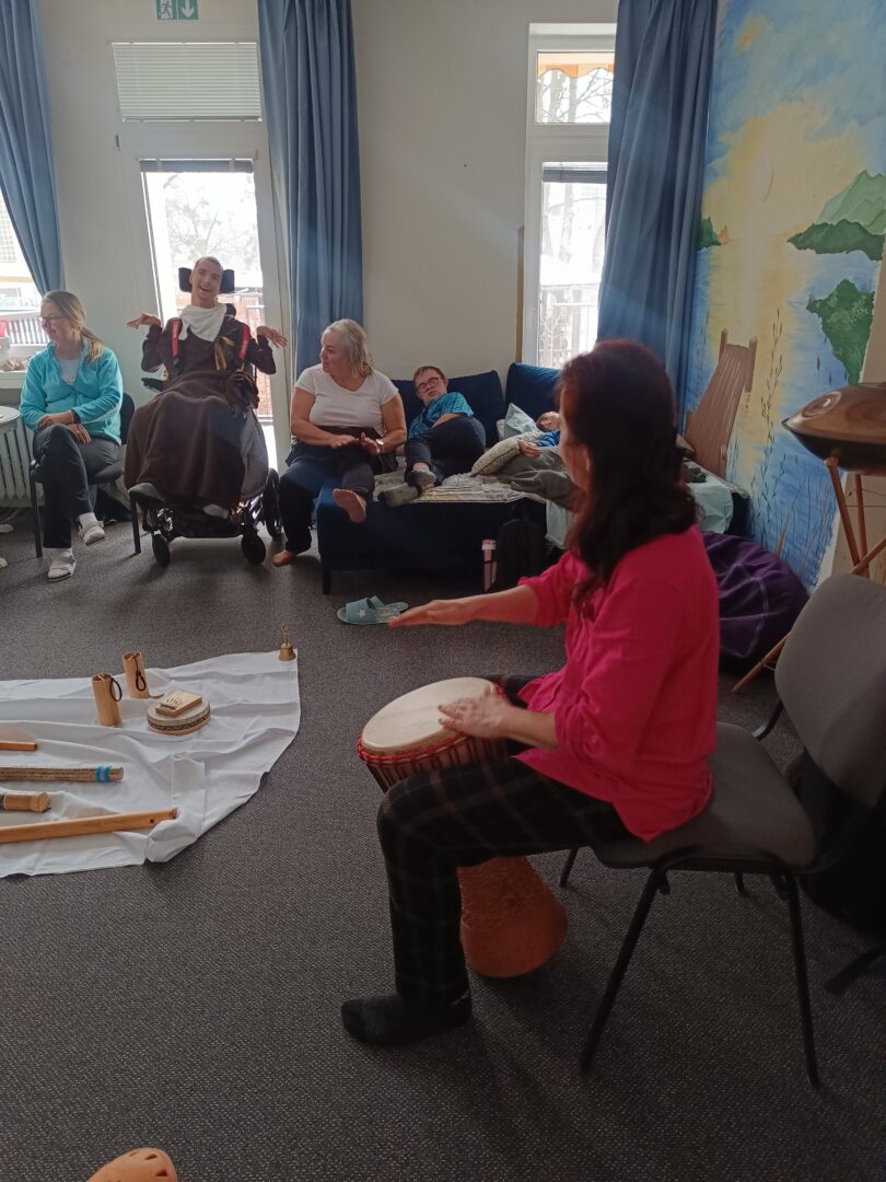 Setkání jsou tak vždy originální, plná radosti, úsměvů a pohody. Někdy je oživí společné bubnování na djembe, jindy známé lidové písně. Součástí je také aktivní muzikoterapie, do které se může zapojit každý klient podle své chuti a možností.