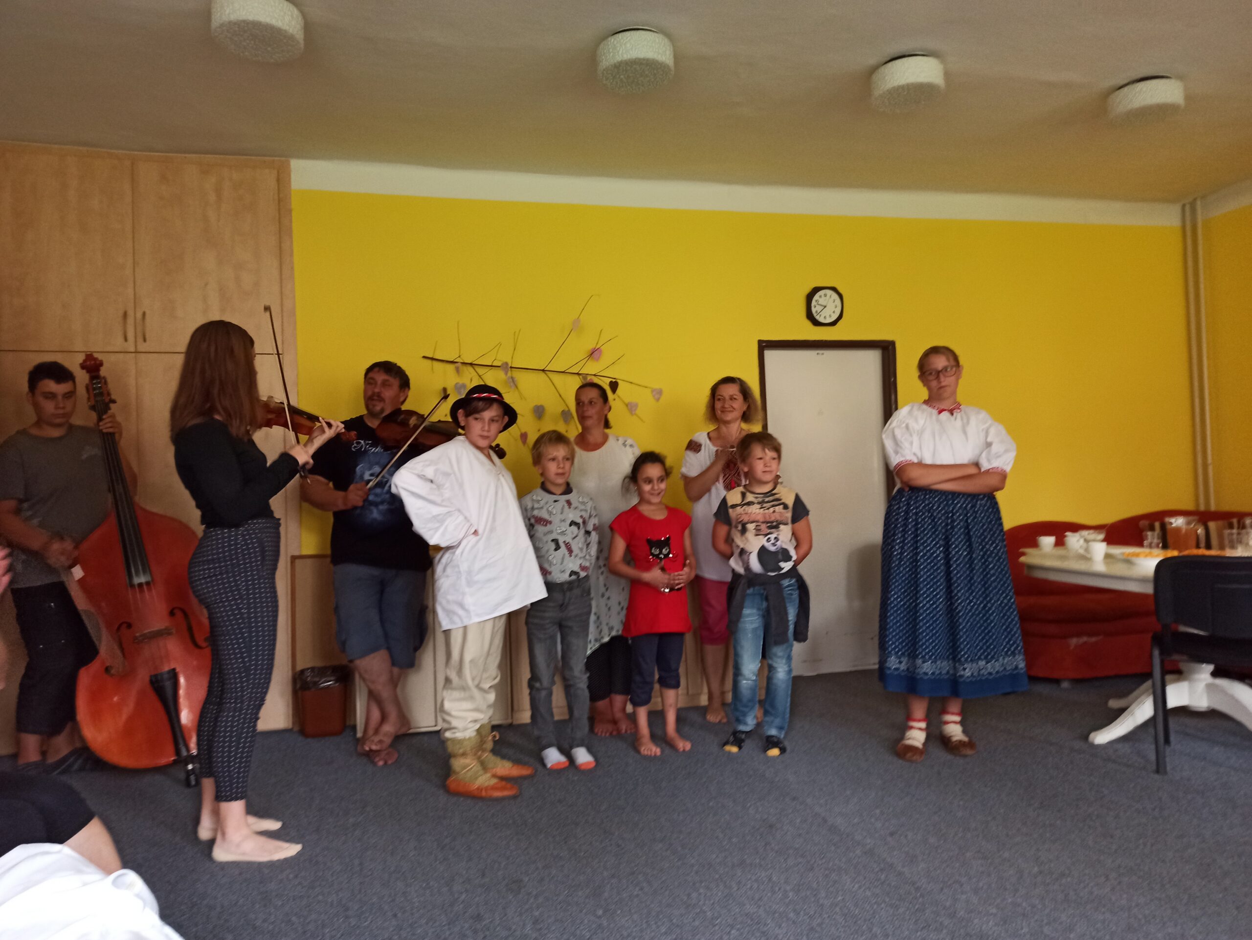 Pondělní (29.08.2022) dopoledne nám zpestřil pěvecký soubor Lomňánek. Jejich návštěva a následné vystoupení bylo pro nás velkým přínosem. Krásně jsme si zazpívali, obdivovali jsme hudební nástroje, hlavně basu, kterou jen tak často nevidíme. Moc se těšíme na další návštěvu a doufáme, že nebude jen jedna a že naše spolupráce bude pokračovat. Zpěváčci od nás dostali na památku dárečky a čokoládu na mlsání.