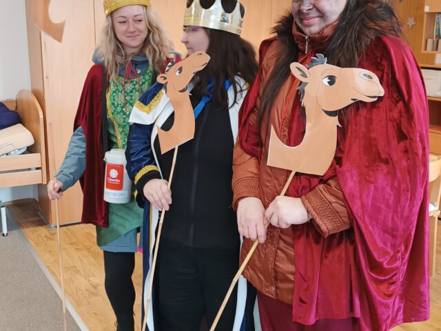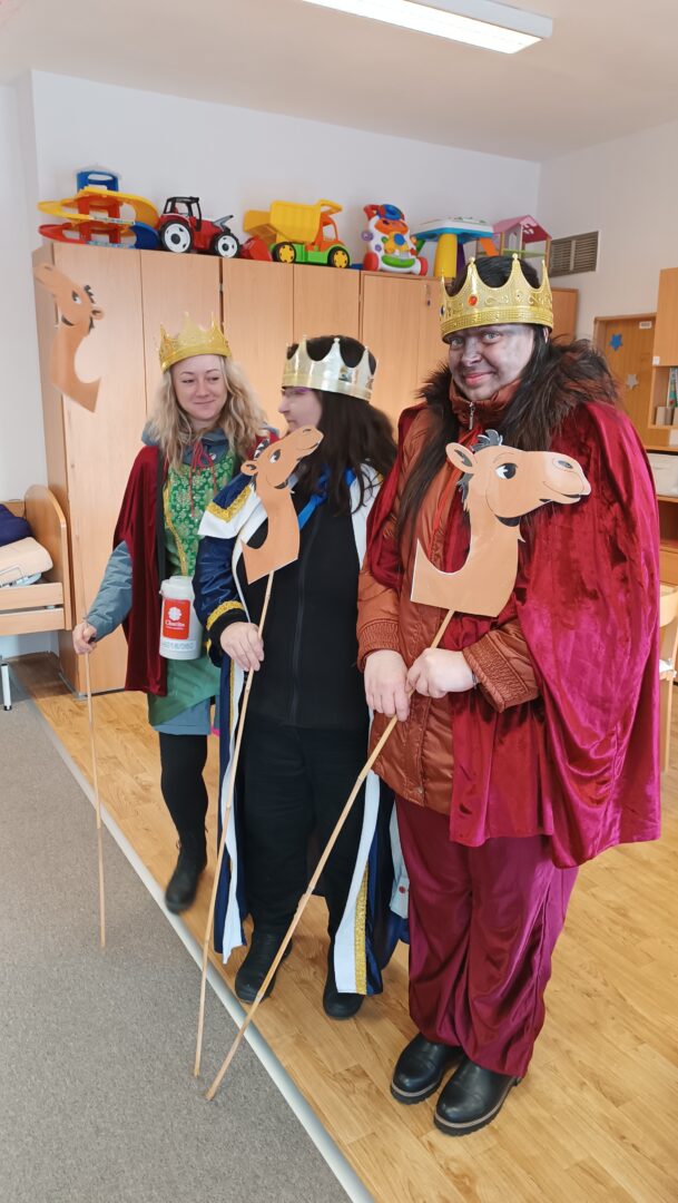 Na svátek Tří králů dorazila do organizace vzácná návštěva z Charity Trinec: Kašpar, Melichar a Baltazar. Přišli nejen s radostnou, tradiční koledou, ale i s požehnáním pro celou organizaci a nechybělo ani tradiční označení dveří nápisem K+M+B 2026.![]()