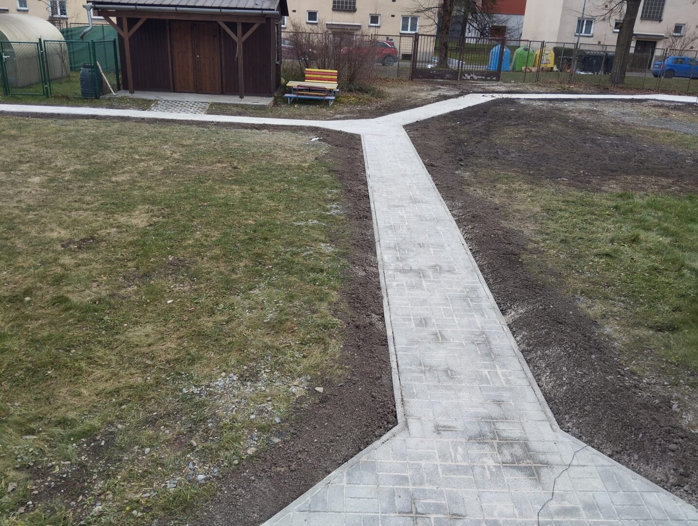 Počátkem prosince 2025 jsme na naší zahradě převzali od stavební společnosti Cieslar, s.r.o. nové chodníky. Máme velkou radost, že se tento záměr podařilo úspěšně zrealizovat a zahrada je nyní dostupnější a bezpečnější pro všechny.