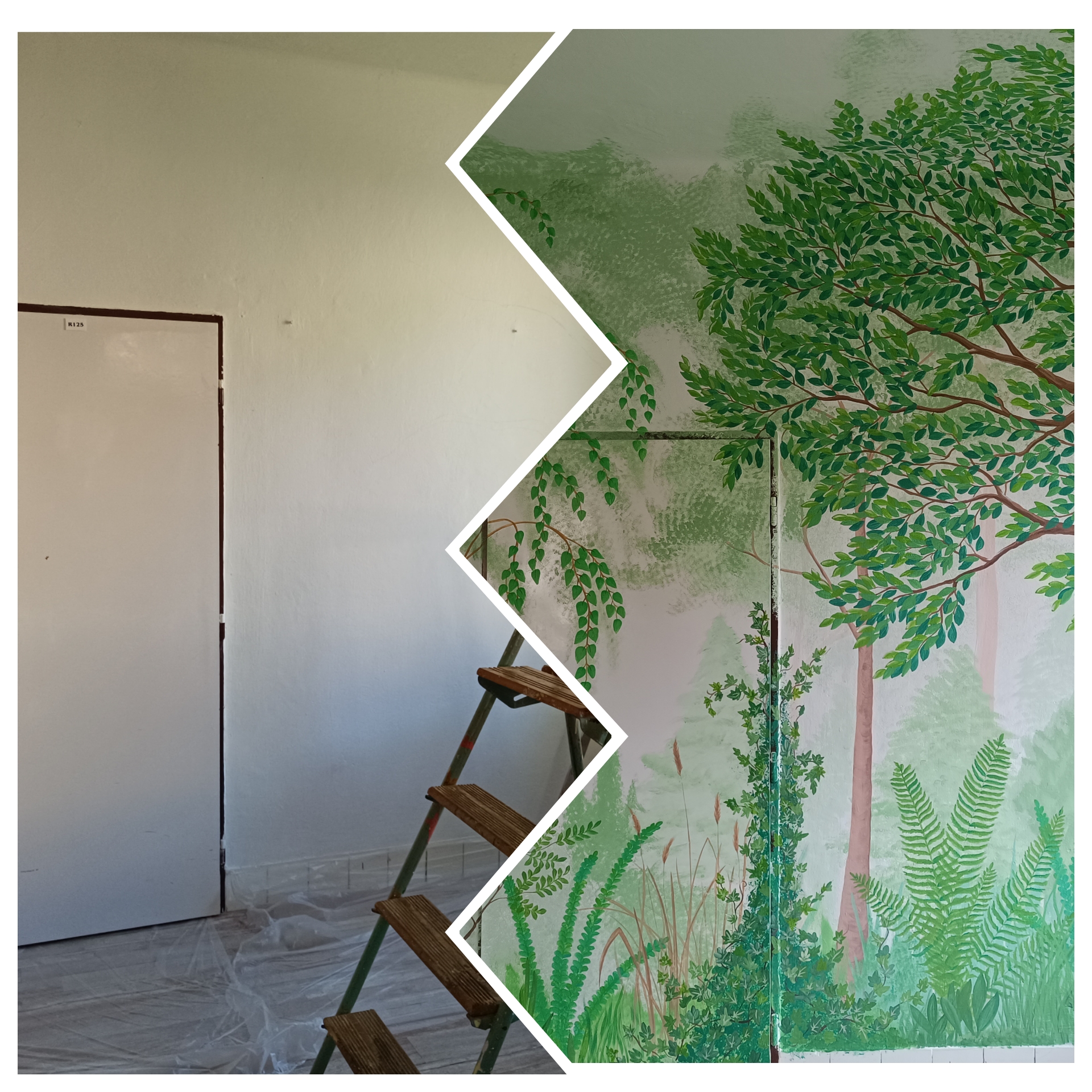 Díky paní Blahutové zdobí jednu stěnu krásná malba Lesa a druhou místnost Jezero s molem. Naši klienti jsou z výsledku nadšení a nové prostředí jim přináší radost i pocit bezpečí.