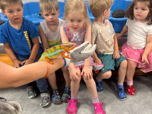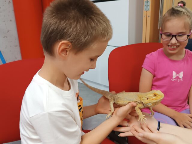 Spatřili jsme želvy, agamu, fretku, leguána, chameleona a králíka. Vyslechli jsme si spoustu zajímavých informací o zvířátkách, jak se o ně starat, co potřebují a v jakých podmínkách žijí. Nejvíce nám udělalo radost si je prohlédnout zblízka, pohladit a vzít do ruky.