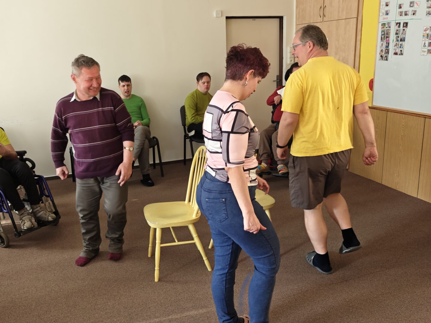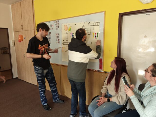 Setkání jsme zahájili přivítáním a krátkým procvičením paměti. Klienti si vyzkoušeli křížovku, kterou připravil Kuba a také ji sám vedl. Poté už následovala hlavní část programu – tanec. Tančili jsme opravdu s chutí, jen s krátkou přestávkou na křesílkovou hru a malé občerstvení.
