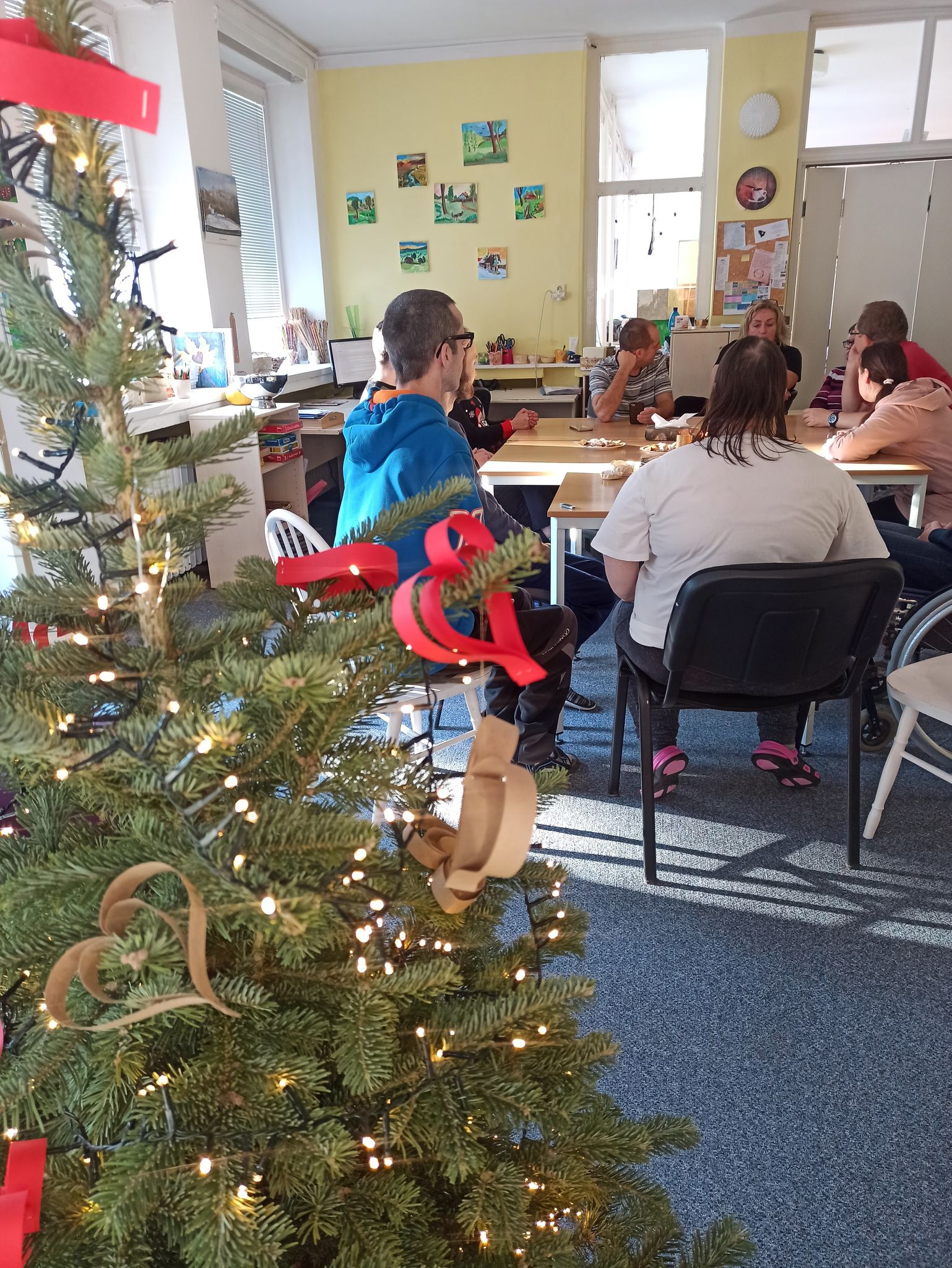 Dne 08. 12 2021 si klienti Denního stacionáře RADOST společně s pracovníky připravili vánoční besídku. Společně si zazpívali vánoční koledy, ochutnali cukroví a vyzkoušeli některé vánoční zvyky. Nejkrásnější okamžik nastal během rozbalování dárků, které si mezi sebou klienti rozdali. Všichni si užili předvánoční náladu a popřáli si všechno nejlepší do nového roku.