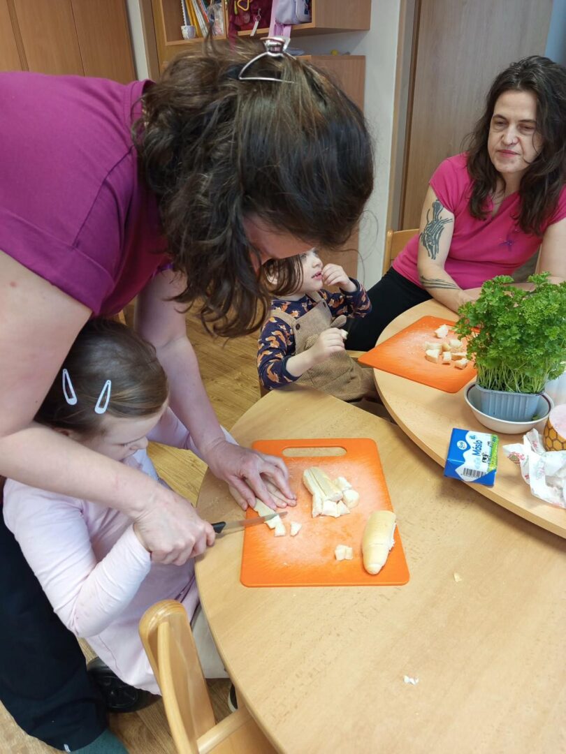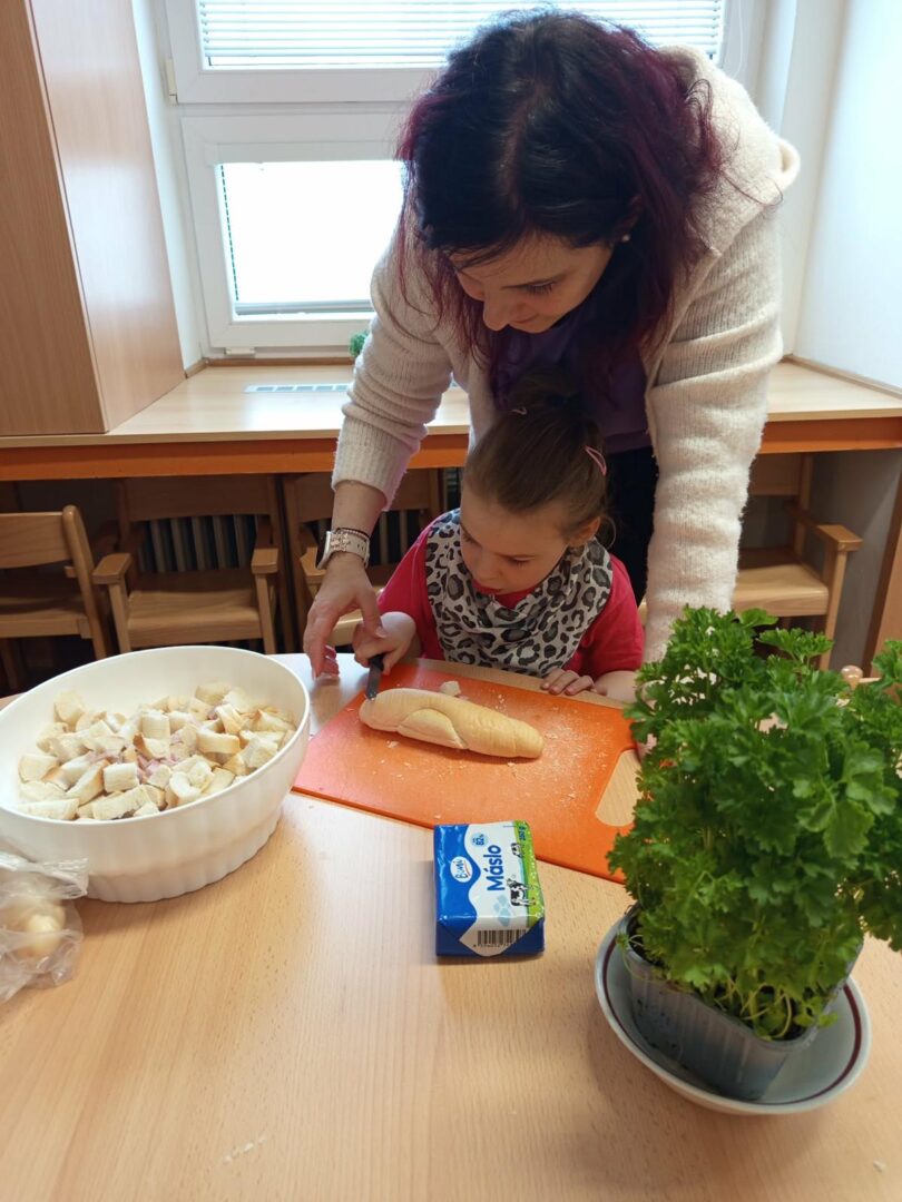 Co se nám dařilo bylo: šití velikonočních zajíčků, výroba přáníček a nesmělo chybět pečení dobrot, na kterých jsme si pak všichni mohli pochutnat.![]()