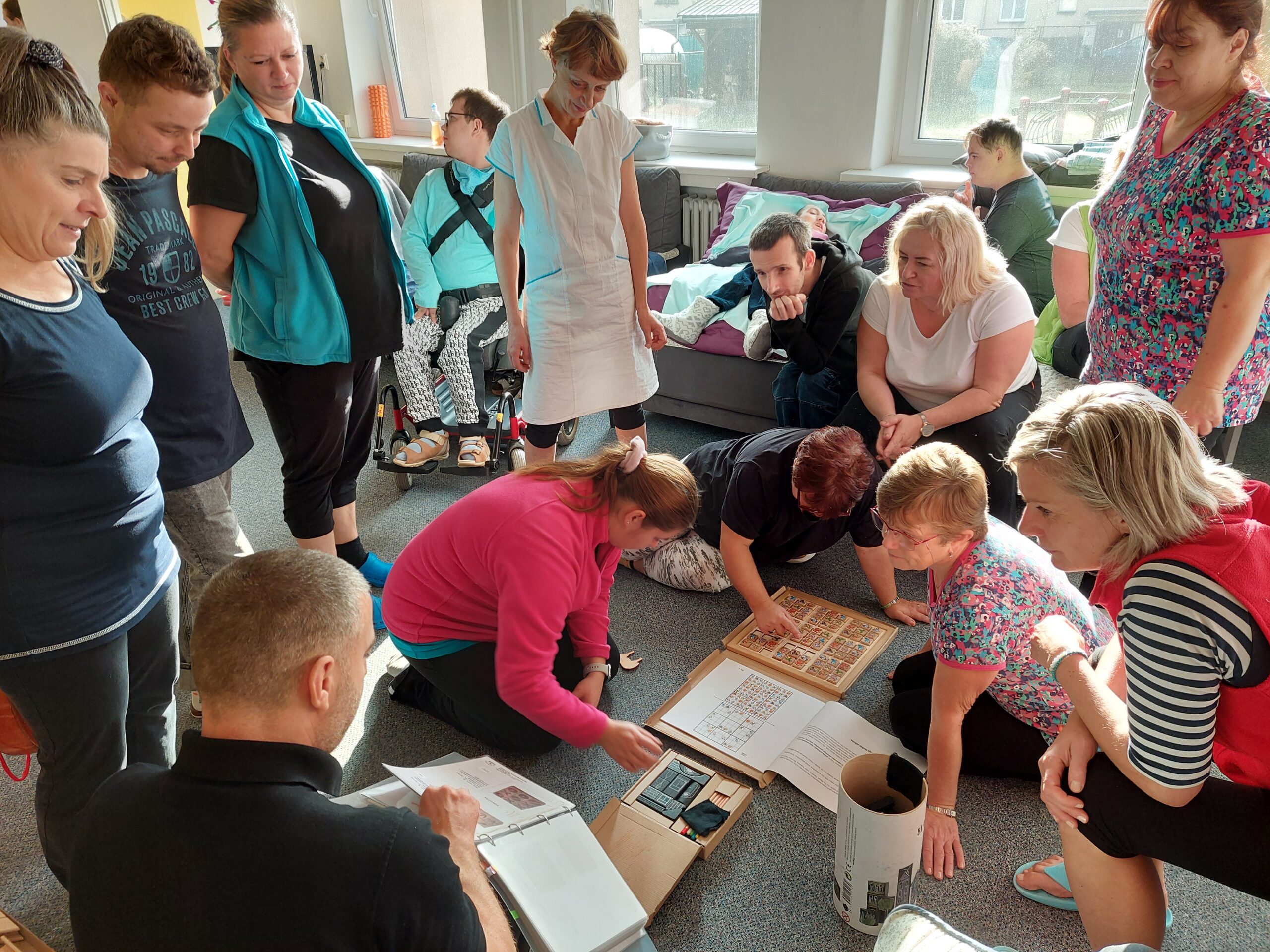 V úterý dne 15. 10. nám náš dobrovolník Dominik Szczerba zprostředkoval workshop dřevěných hraček vyrobených v chráněné dílně T-WOOD. Navštívil nás pan Patrik Šimko, který je obchodním zástupcem chráněné dílny T-Wood, sídlící ve Frýdlantu nad Ostravicí. Chráněná dílna se zabývá výrobou již zmiňovaných dřevěných produktů na procvičování jemné motoriky. Produkty mohou posloužit dále k výuce a k procvičování. Společné dopoledne proběhlo formou her a zkoušení různých produktů. Klienti byli nadšení, zkoušeli různé předměty např. z dřevěné abecedy skládali jména všech klientů a pracovníků, malovali na černé dřevěné kostky, hráli pexeso apod.
