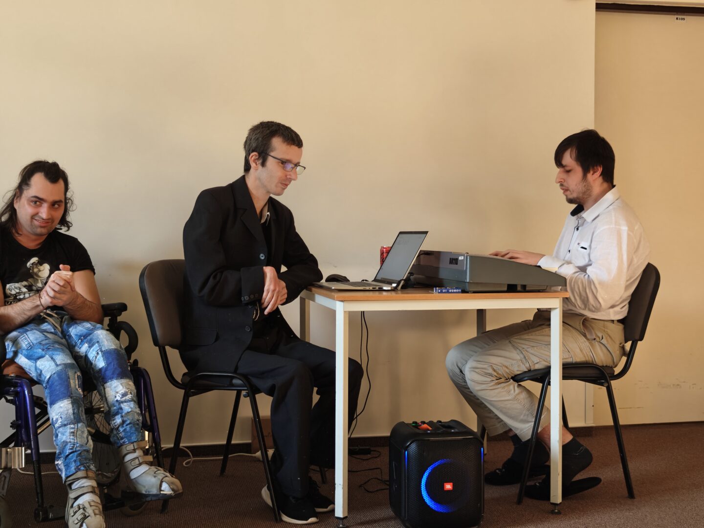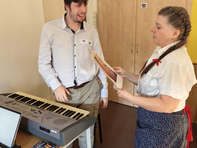 V přestávce zazněly lidové písně v podání našeho virtuóza Martina Mizie, který zahrál tři krásné lidové skladby. O veškerou techniku a hudební doprovod se postaral Stanislav Bronček.